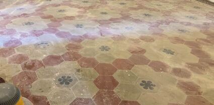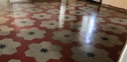 Sulla pavimentazione di una casa privata è stato eseguito un intervento di recupero e manutenzione straordinaria che ha riportato allo splendore originario le superfici in cementine, totalmente ricoperte da sporco e polvere post cantiere.