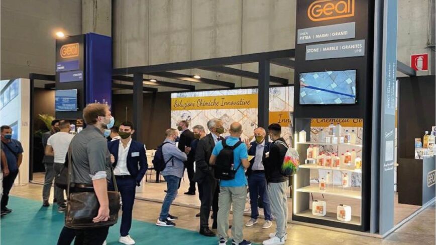 Grande successo di visitatori allo stand GEAL che, in quest'occasione, ha presentato due linee di prodotti per il recupero ed la conservazione di pietre-marmi-graniti e di cemento.